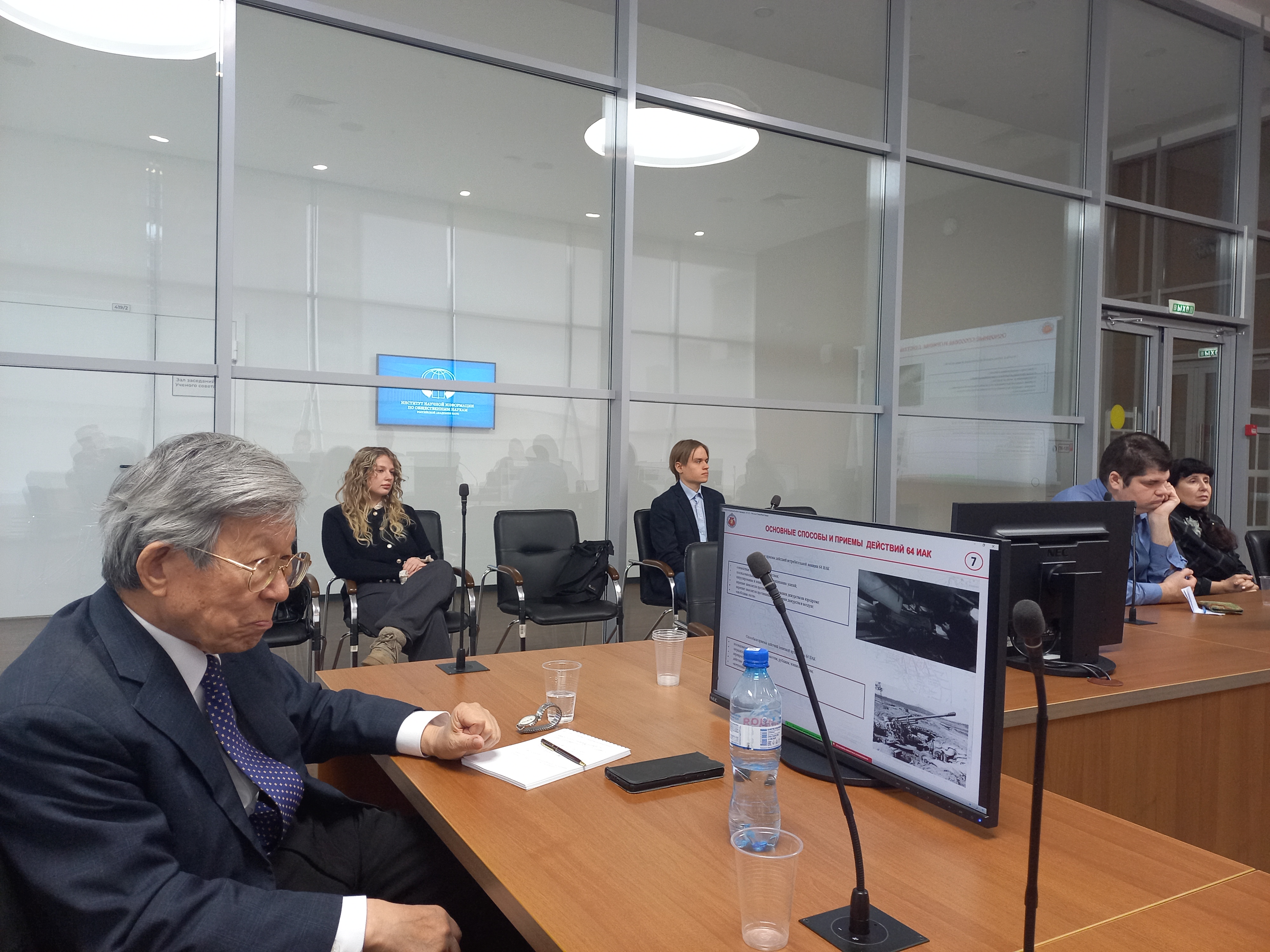 представители Научно-исследовательского института военной истории Военной Академии Генерального штаба Вооруженных Сил, Центрального музея Военно-Воздушных Сил Министерства обороны, 27-го Научного центра имени академика Н.Д. Зелинского Министерства обороны, ученые Республики Корея, а также председатель Российского Совета ветеранов Корейской войны А.Ю. Шин. Гостями мероприятия стали студенты ГАУГН. Открыло данное заседание выступление директора ИНИОН члена-корреспондента РАН А.В. Кузнецова.