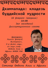 Научный семинар Отдела Азии и Африки. Доклад Д.В. Михеля: «Дхаммапада: кладезь буддистской мудрости». Пост-релиз
