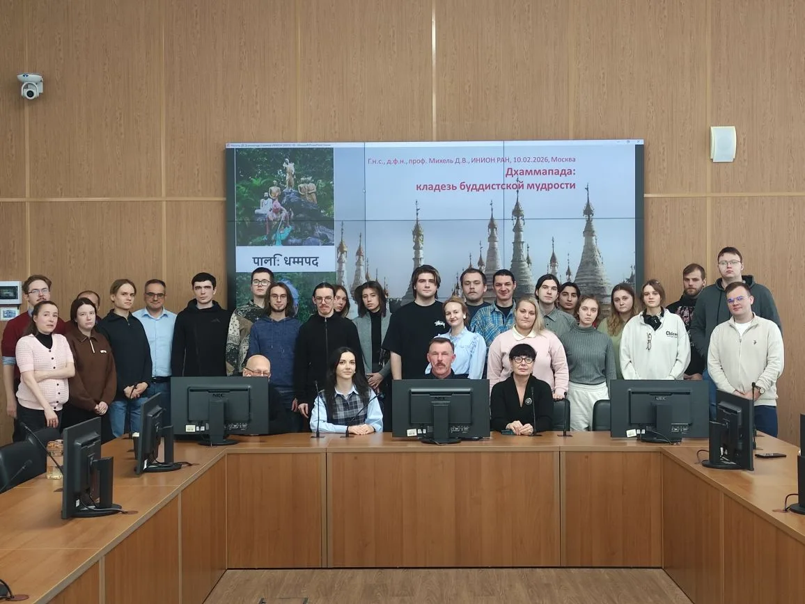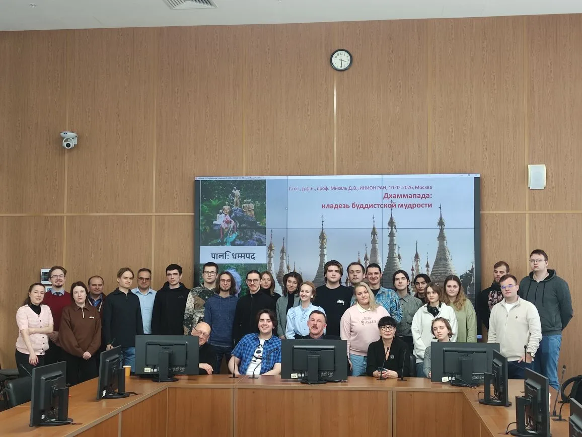 10 февраля 2026 года в ИНИОН РАН состоялся научный семинар Отдела Азии и Африки по теме «Дхаммапада: кладезь буддистской мудрости». С докладом выступил доктор философских наук, главный научный сотрудник ИНИОН РАН Дмитрий Викторович Михель. Участниками семинара стали коллеги по ИНИОН РАН, а также магистранты ГАУГН первого и второго курсов.